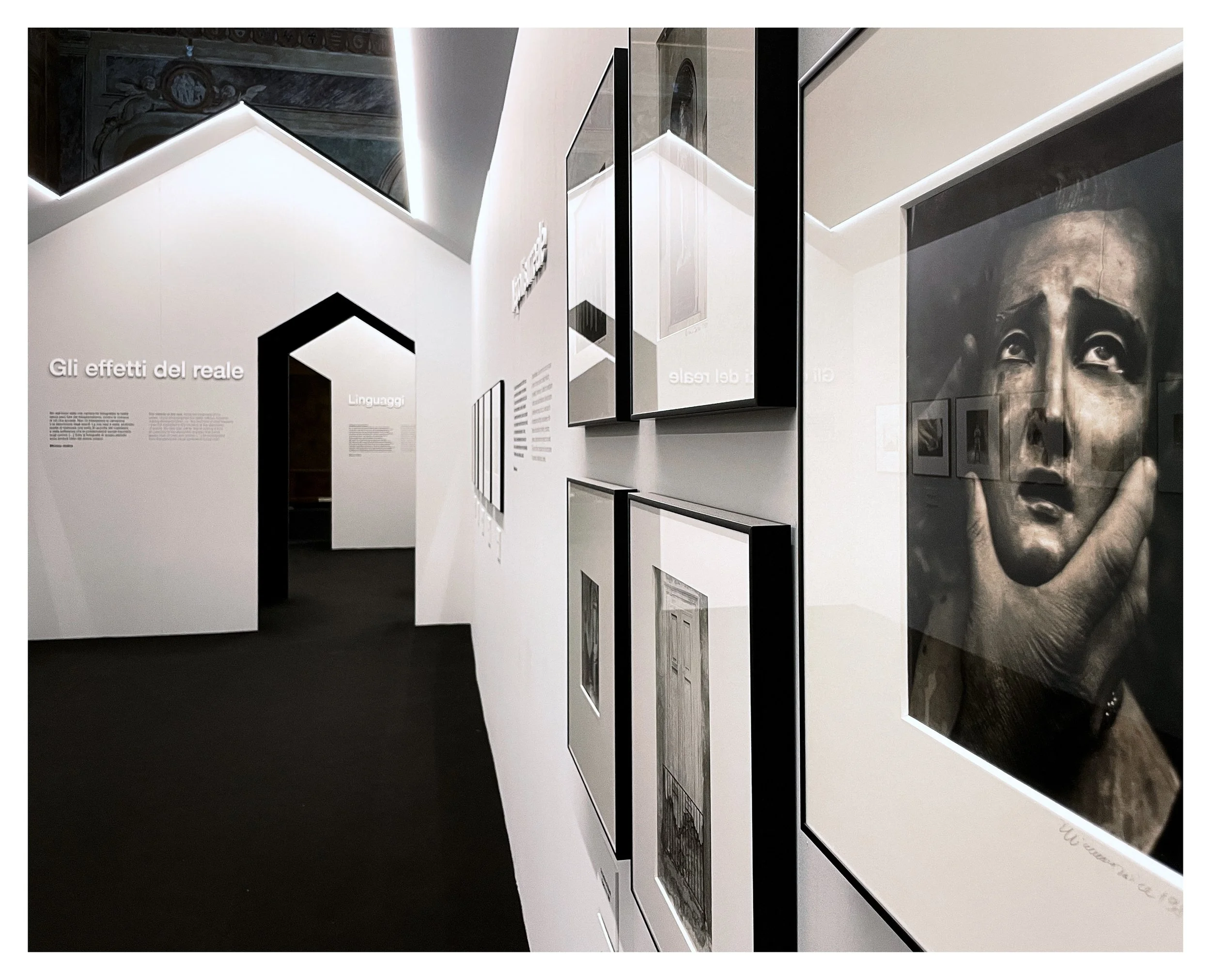One of the most striking aspects of the Udine Castle exhibition is the way Jodice’s photographs are staged within the (exhibition) architecture. The curators have built a series of small, house-like enclosures - intimate chambers where each room focuses on a distinct part of his creative periods. Yet these rooms have no ceilings. As you move through them, your gaze rises toward the frescoed vaults of the historic castle above. The effect is powerful: Jodice’s stark black-and-white images, presented on white walls in classic passepartouts offer a deliberate contradiction to the ornate, brightly painted ceilings. It’s as if the contemporary photographic vision and the Renaissance past are locked in dialogue, inviting visitors to feel suspended between the stillness of the photograph and the narrative exuberance of the fresco.